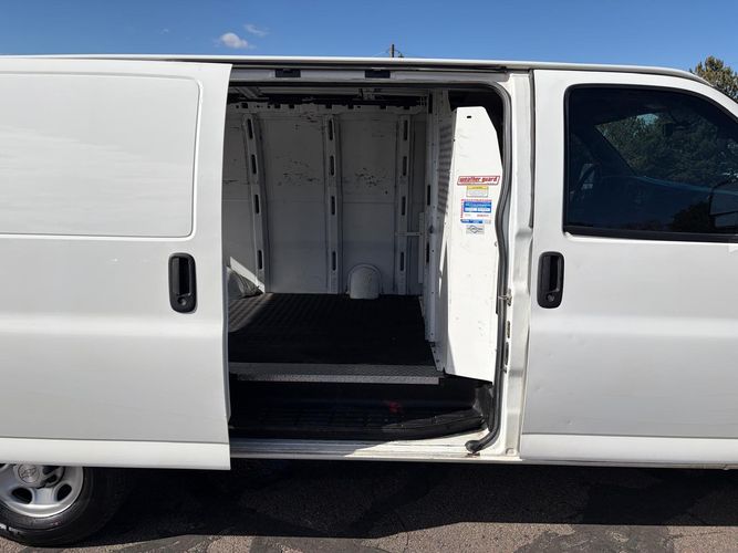 *** 1 OWNER *** NEW TIRES *** BACK UP CAMERA *** 2018 Chevrolet Express 3500 Cargo Van, 129,070 Miles, White on Gray, OPTIONS: 6.0L V8 Engine, Automatic Transmission, Rear Wheel Drive, Air Conditioner, Cruise Control, All Power Options, Back Up Camera, Partition Wall, Hitch and much more!!! *** HAS LIGHT HAIL DAMAGE ***