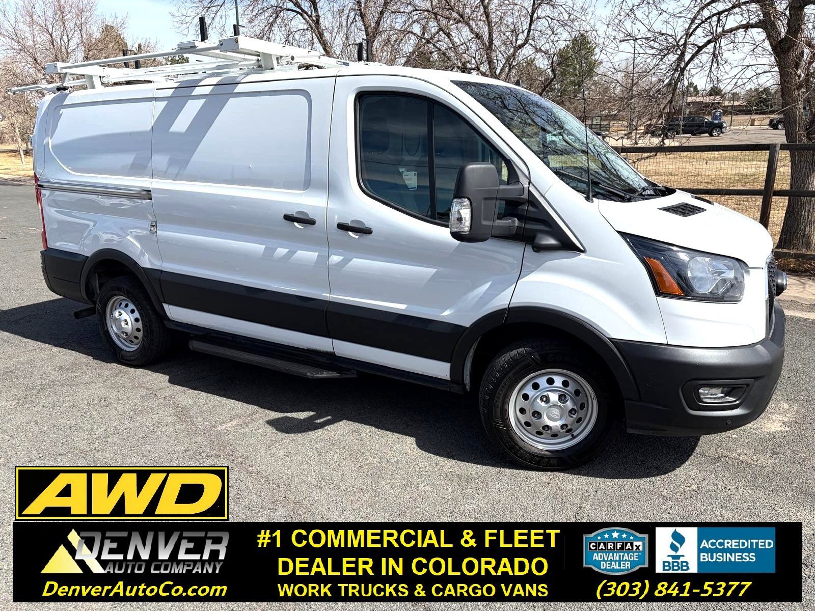 *** ALL WHEEL DRIVE *** COMMERCIAL SHELVING *** LADDER RACK *** 2023 Ford Transit AWD 250 Cargo Van, 130” Wheelbase, Low Roof, 69,912 Miles, White on Black, OPTIONS: 3.5L V6 Engine, Automatic Transmission, All Wheel Drive, All Power Options, A/C, Navigation System, Bluetooth, Back Up Camera, 360 Degree Camera, Blind Spot Assist, Partition Wall, Commercial Shelving, Ladder Rack, Running Boards and much more!!!