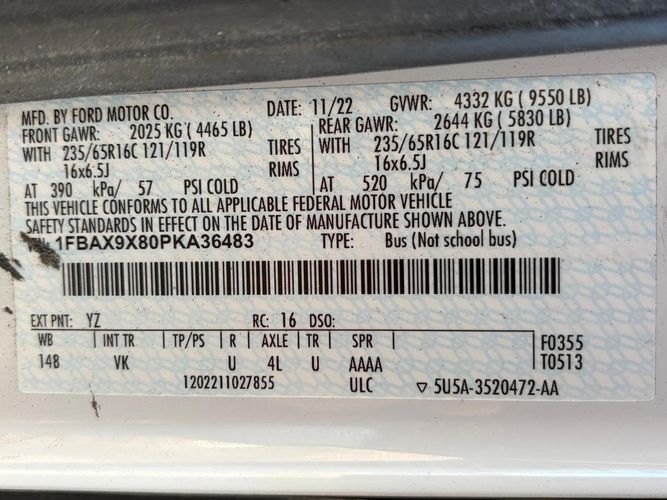 Cargo floor type: Vinyl/rubber cargo area floor